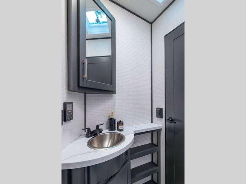 Sleeps 6 Length 34 ft 1 in Ext Width 8 ft 6 in Ext Height 12 ft 9 in Hitch Weight 1000 lbs GVWR 12440 lbs Dry Weight 7440 lbs Cargo Capacity 5000 lbs Fresh Water Capacity 80 gals Grey Water Capacity 40 gals Black Water Capacity 40 gals Fuel Capacity 40 gals Number Of Bunks 1 Available Beds King Refrigerator Type 12V Refrigerator Size 10 cu ft Convection Cooking Yes Number of Awnings 1 Garage Size 16 ft 1 in LP Tank Capacity 20 lbs Water Heater Type Tankless AC BTU 15000 btu Axle Count 2 Number of LP Tanks 2 Shower Type Radius Similar Floorplans