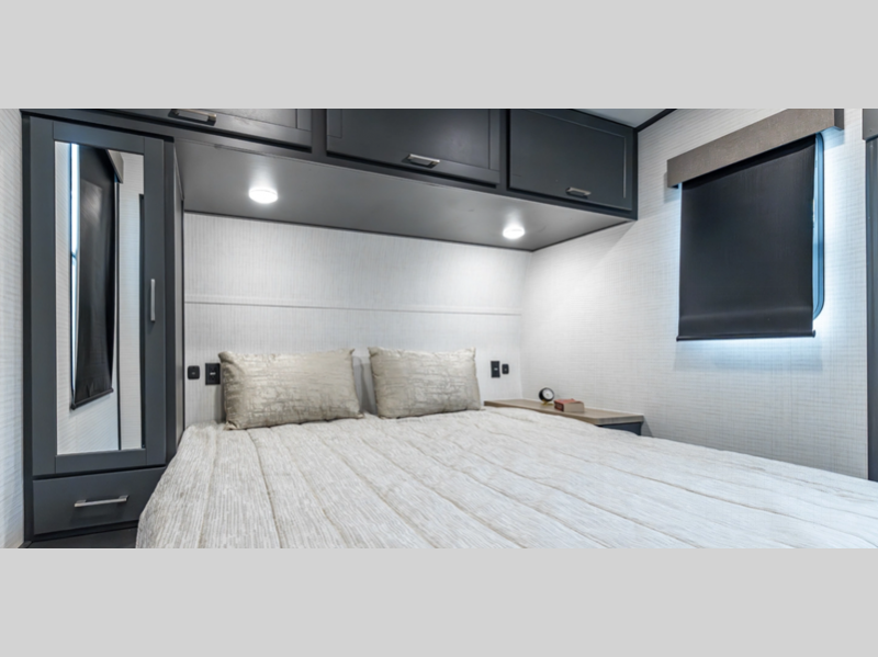 Sleeps 6 Fresh Water Capacity 102 gals Tire Size 16" Furnace BTU 35000 btu Fuel Capacity 40 gals Number Of Bunks 1 Available Beds King Refrigerator Type 12V Refrigerator Size 10.7 cu ft Convection Cooking Yes Cooktop Burners 3 Number of Awnings 1 Axle Weight 6000 lbs Garage Size 13 ft LP Tank Capacity 30 lbs Water Heater Type Tankless AC BTU 15000 btu Awning Info With LED Lights Axle Count 2 Number of LP Tanks 2 Shower Type Radius Solar Wattage 200 watts Similar Floorplans