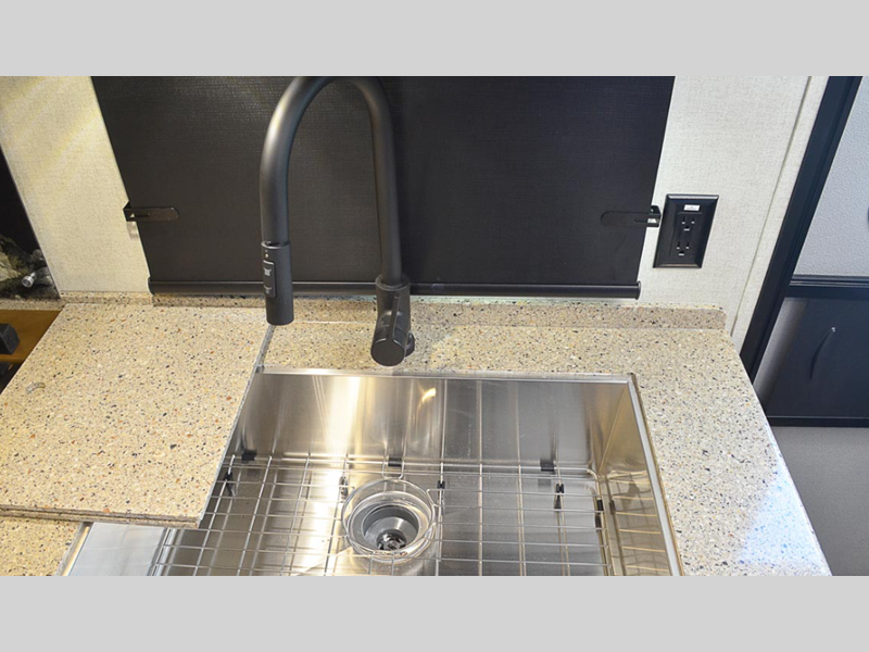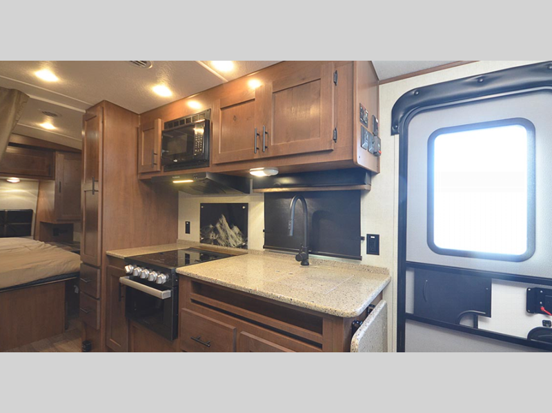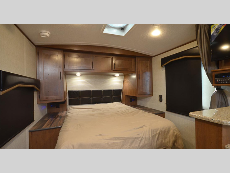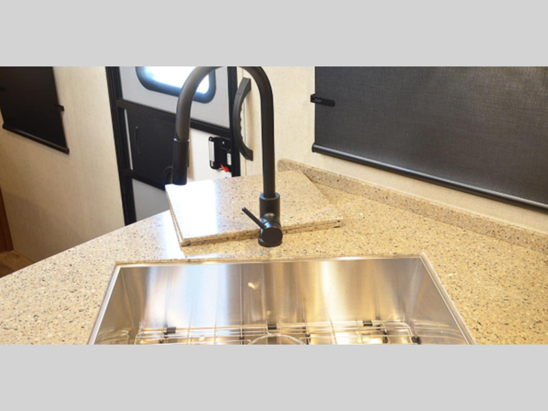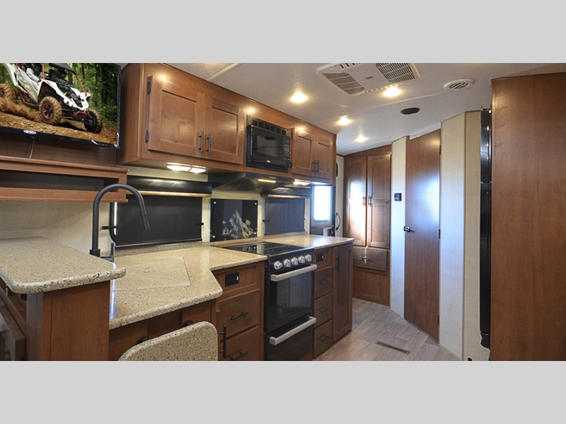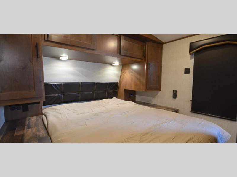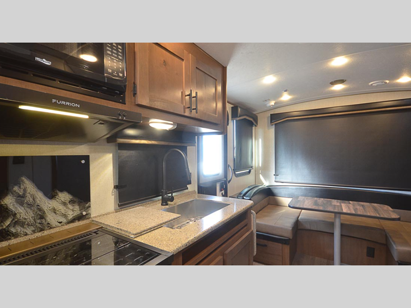 Each is built with the Climate Designed Four Seasons package which includes triple layered four seasons roof insulation, an Extreme camping heat system with an XL furnace, and a unique heated insulated holding tank design. And a few interior highlights include residential height kitchen countertops, full extension 100 lb. metal drawer guides, a vaulted radius ceiling providing approximately 5" of additional headroom, and Ultra leather furniture and dinette seats.