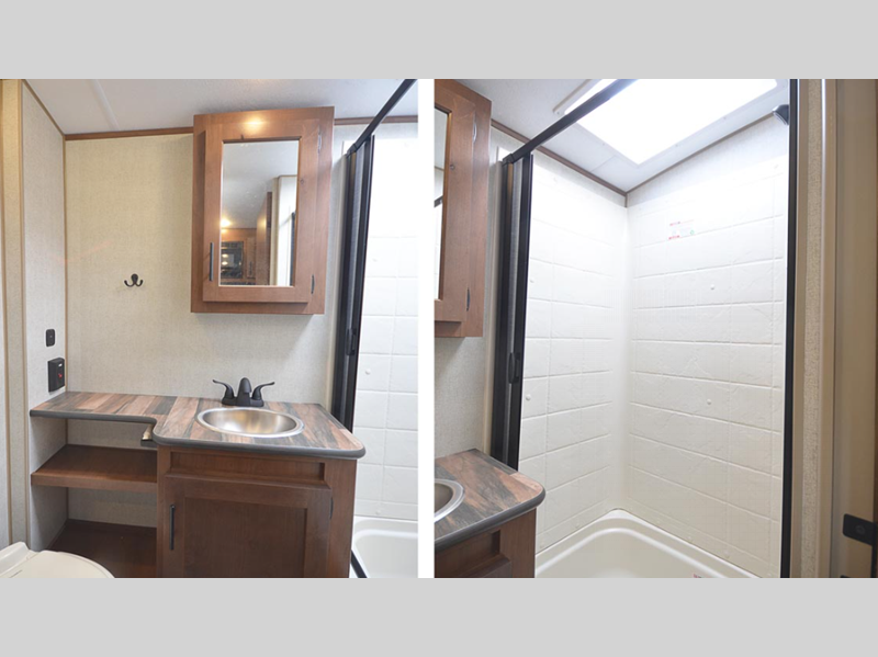 Sleeps 5 Slides 1 Length 28 ft 8 in Ext Height 11 ft 7 in Int Height 6 ft 11 in Interior Color Mountain Juniper Hitch Weight 965 lbs GVWR 9995 lbs Dry Weight 7430 lbs Cargo Capacity 2565 lbs Fresh Water Capacity 100 gals Grey Water Capacity 80 gals Black Water Capacity 40 gals Tire Size ST235/80/16E Furnace BTU 35000 btu Generator Cummins Onan 3.6K On-Board LP Available Beds Queen Refrigerator Type 12V Refrigerator Size 10 cu ft Cooktop Burners 3 Number of Awnings 1 Axle Weight 5200 lbs LP Tank Capacity 40 lbs Water Heater Capacity 10 gal AC BTU 13500 btu TV Info LR 40" LED HDTV Awning Info 20' Axle Count 2 Number of LP Tanks 2 Shower Type Neo-Angled Electrical Service 30 amp Similar Floorplans