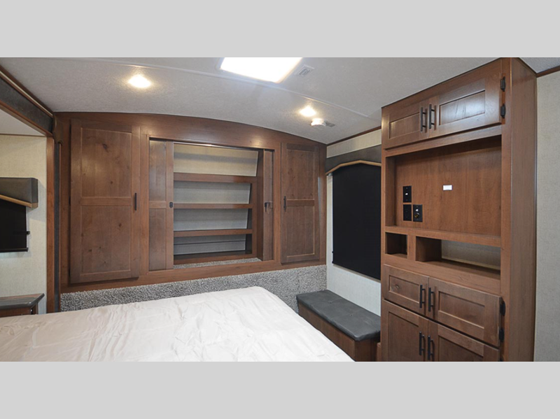 Sleeps 5 Slides 2 Length 34 ft 11 in Ext Width 8 ft Ext Height 11 ft 7 in Int Height 6 ft 11 in Interior Color High Desert, Western Sunrise Hitch Weight 805 lbs GVWR 11000 lbs Dry Weight 8210 lbs Cargo Capacity 2790 lbs Fresh Water Capacity 80 gals Grey Water Capacity 80 gals Black Water Capacity 50 gals Tire Size ST235/80/16E Furnace BTU 35000 btu Available Beds Queen Refrigerator Type 12V Off Grid Refrigerator Size 10 cu ft Cooktop Burners 3 Number of Awnings 1 Axle Weight 5200 lbs LP Tank Capacity 30 lbs Water Heater Capacity 10 gal TV Info LR 40" Swing-Out TV Awning Info 21' Axle Count 2 Number of LP Tanks 2 Shower Type Neo-Angled Similar Floorplans