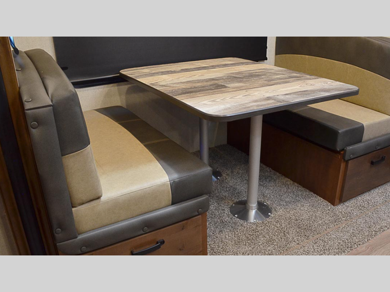 These models are designed with a rugged 8" chassis with XL ground clearance and 5,100 lb. axles for camping trips across the nation. You will appreciate the 10 gallon water heater, the XL refrigerator, plus the 15,000 A/C to keep you comfortable during the summer months. The mountain lodge interiors will have you feeling like you're staying at a lodge in the forest, and the LG solid surface countertops will add that touch of luxury.