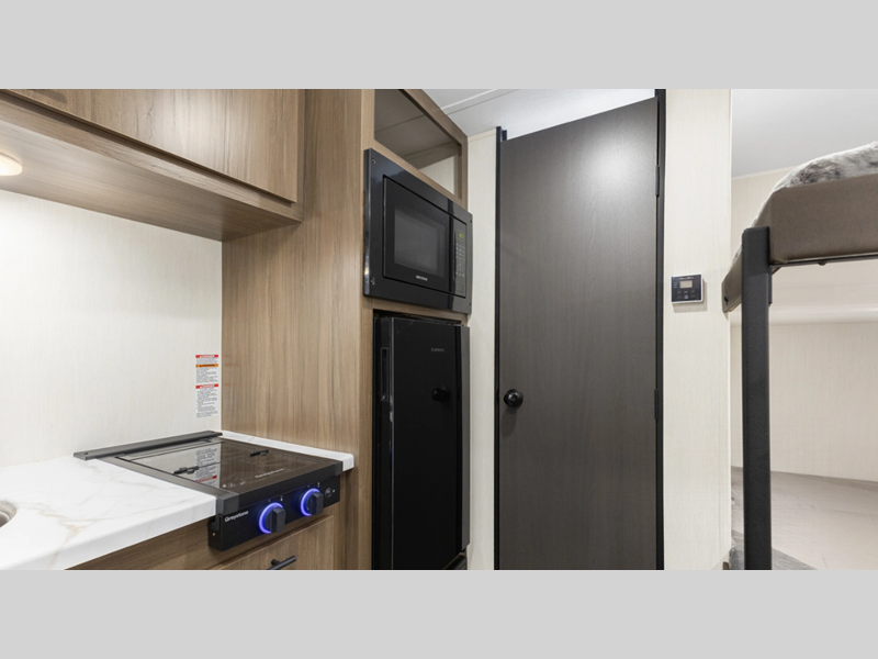Sleeps 8 Slides 1 Number Of Bunks 2 Available Beds Camp Queen Refrigerator Type 12V Cooktop Burners 2 Number of Awnings 1 Water Heater Type Tankless On Demand AC BTU 10000 btu Awning Info Power Axle Count 1 Shower Type Standard Similar Floorplans