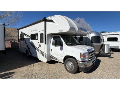 With any Quantum ESpec Essential Class C gas motorhome by Thor Motor Coach, you will find convenient amenities, a modern interior, and a reliable Ford E-Series chassis, with an optional Chevy chassis on select models to power your adventures. There is welded tubular aluminum roof and sidewall cage construction, a one-piece fiberglass front cap, and premium one-piece Crossflex exterior roofing for added strength. Residential vinyl flooring will be easy to keep clean, and you'll love the sleek look of the Harbor Collection, three-toned cabinets. These motorhomes also include a 50 state 4.0 kW dual gas/LP generator and a 30-amp shoreline power cord to keep you going, along with a tankless water heater and 13,500 roof front A/C to ensure your comfort!
